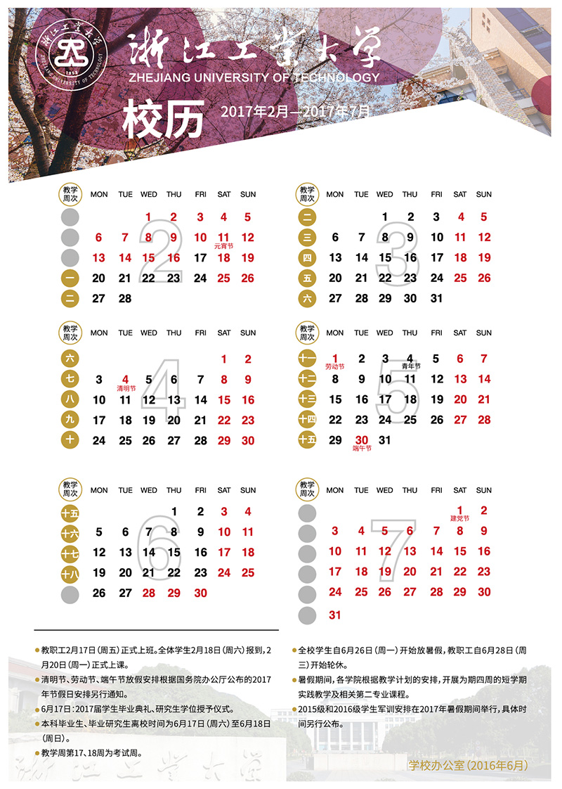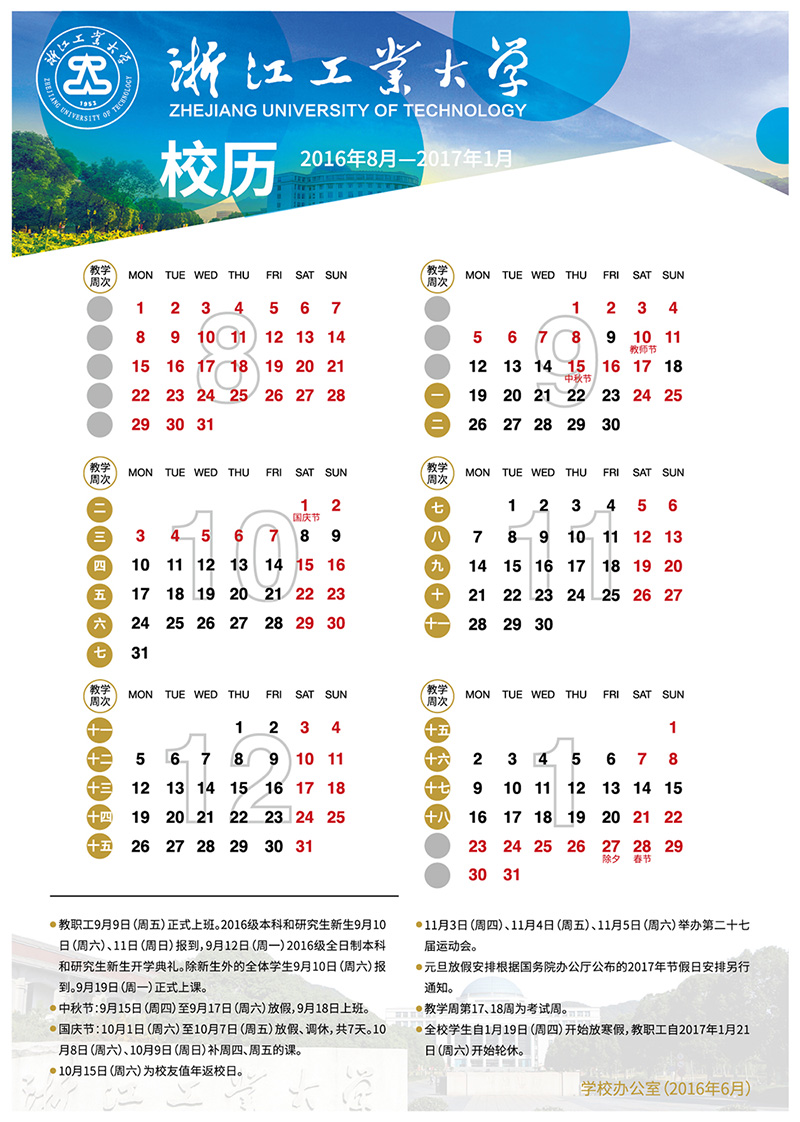 經校長辦公會議研究決定,2016/2017學年校歷安排如下: