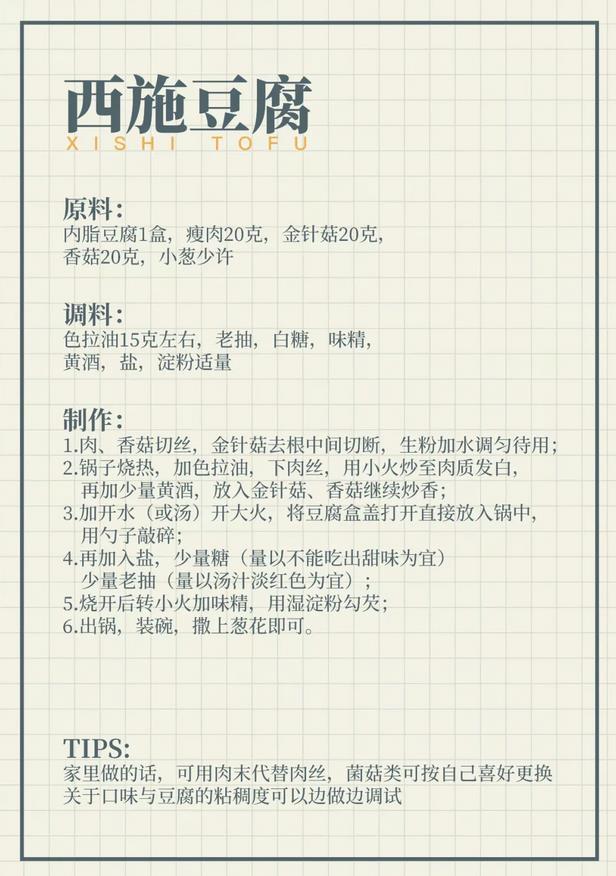 何師傅還為大家分享了西施豆腐的菜譜和制作方法: