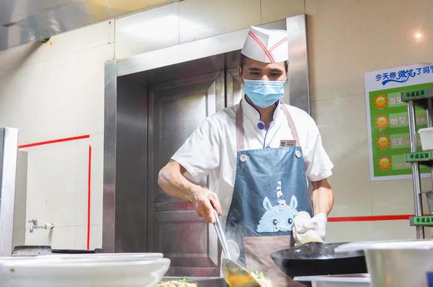中午的10點半到12點半,是何師傅尤為忙碌的時間段。飯點來光顧的人很多,有時需等待半個多小時,他很怕影響到師生們的休息時間,心里很焦急,但又不能馬上出菜,常為此煩惱不已?!暗瑢W們還是很耐心地等待著,這讓我很感動。”有些師生趕時間,也常常詢問:“何師傅,下一鍋是什么?我也再來一份!”何師傅就一一為他們報出下面幾鍋的菜名,長此以往,他的記憶力飛速提升。他不無自豪地提到,“我有次一口氣報出了二十多份點單,有十種不同的菜品”。