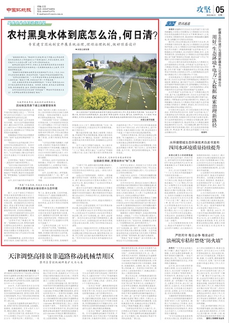 《中國環境報》以《農村黑臭水體到底怎么治,何日清?》為題,聚焦農村黑臭水體治理問題。報道中,李軍提出黑臭水體農村與城市的差異性,造成農村治理難度大。他強調農村黑臭水體的治理要在因地制宜思路下建立統籌管理體系;應強調全過程管理;探索試點,總結分區分類治理經驗。