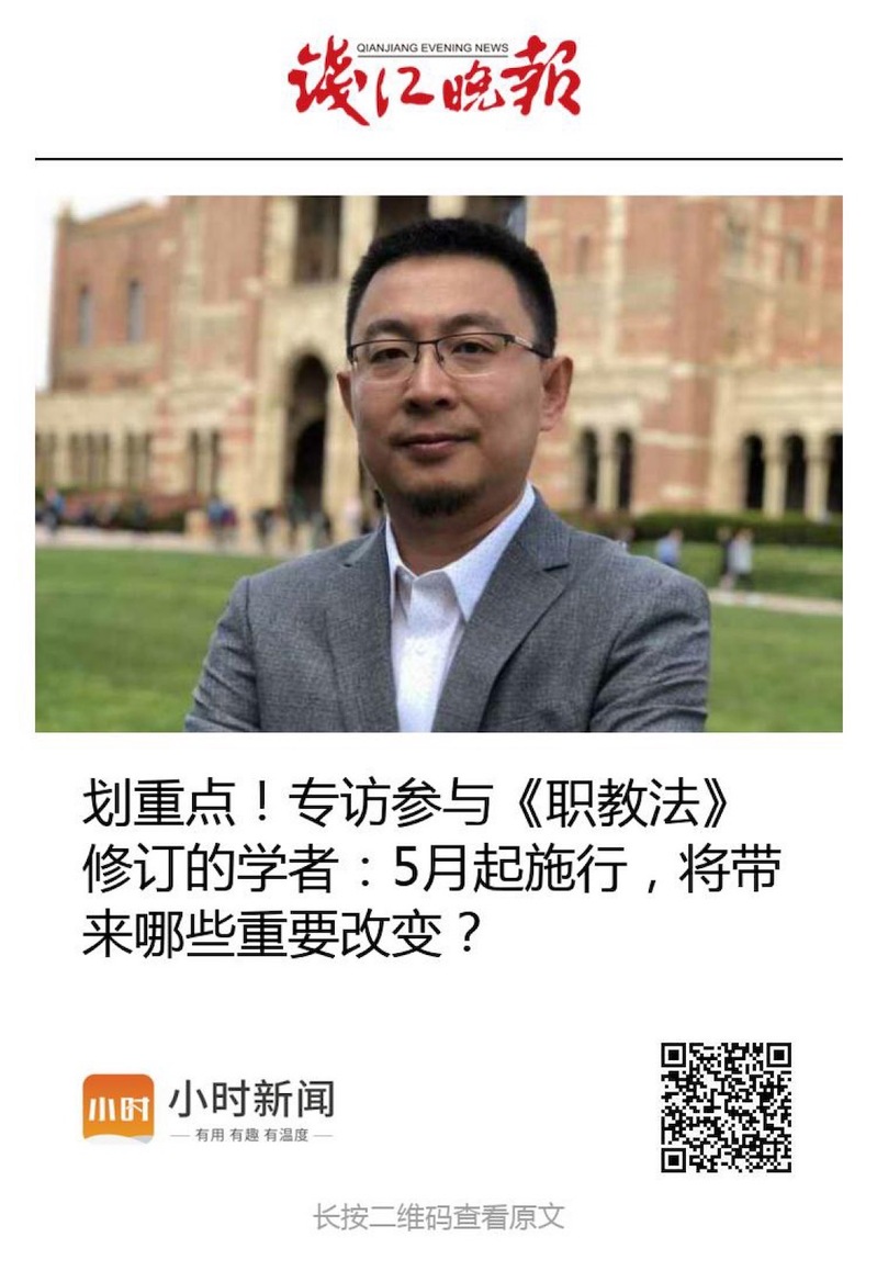 4月27日,我校教育科學與技術學院副院長,浙江省新型高校智庫——職業教育現代化研究中心執行主任劉曉教授接受《錢江晚報》專訪,圍繞十三屆全國人大常委會第三十四次會議表決通過新修訂的《中華人民共和國職業教育法》,作為本次修法相關工作的專家學者為公眾答疑解惑,劃清重點。