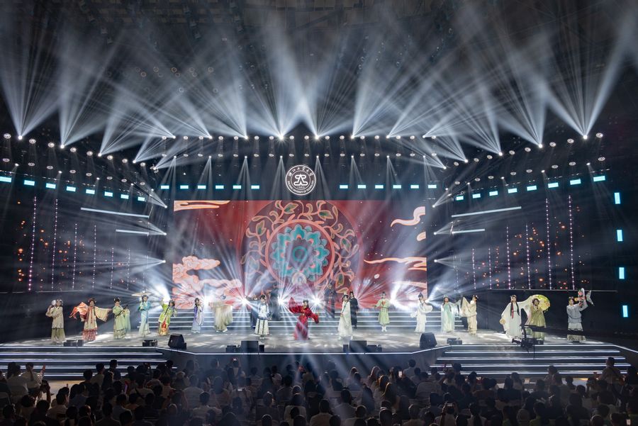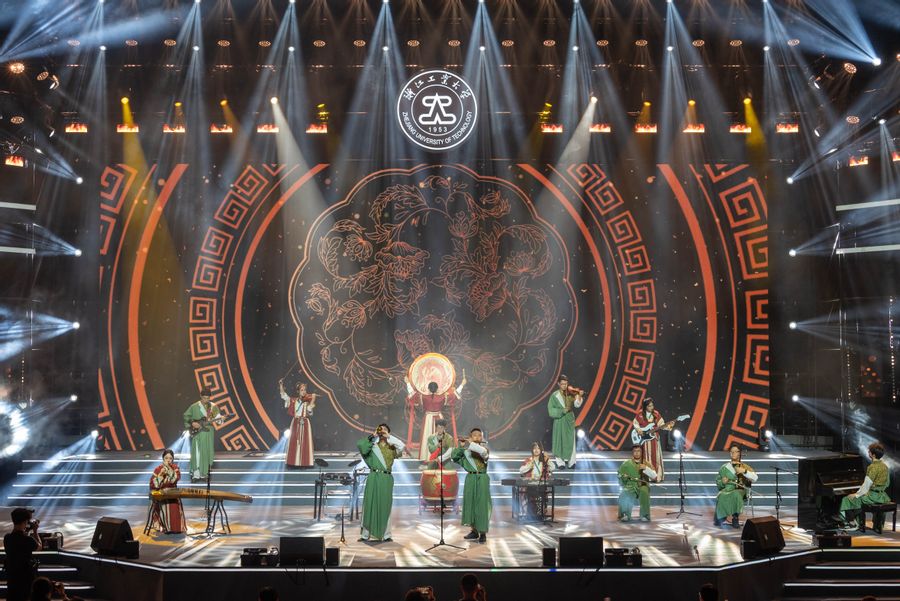 晚會分為“青春遇見 奔赴曠野”“循夢而行 向陽而生”“志懷家國 逐夢未來”三個篇章,在宏偉壯闊的管樂合奏《情熱大陸》中拉開序幕,活動現場氣氛熱烈。歌曲串燒《夏天》《第一天》帶領大家回憶起畢業季的點點滴滴,向即將畢業的學子們傳達了美好的祝愿。器樂合奏《華燈初上》和國風走秀《鏡鑒華裳》分別以民樂演奏和傳統服飾走秀的形式,展現了中華文化的深厚底蘊。合唱《如愿》講述了浙工大研支團連續十一年從“浙”里奔赴大山的青春故事。合唱《上春山》和朗誦《河床》展現了母親河的偉大和對祖國山河的贊美。晚會最后,一曲《我愛你中國》歌曲由校友代表、青年學生代表以及幼兒園的小朋友們共同演繹,傳遞了不同時代“工大人”的共同情感,表達了對祖國的熱愛和對未來的期待。