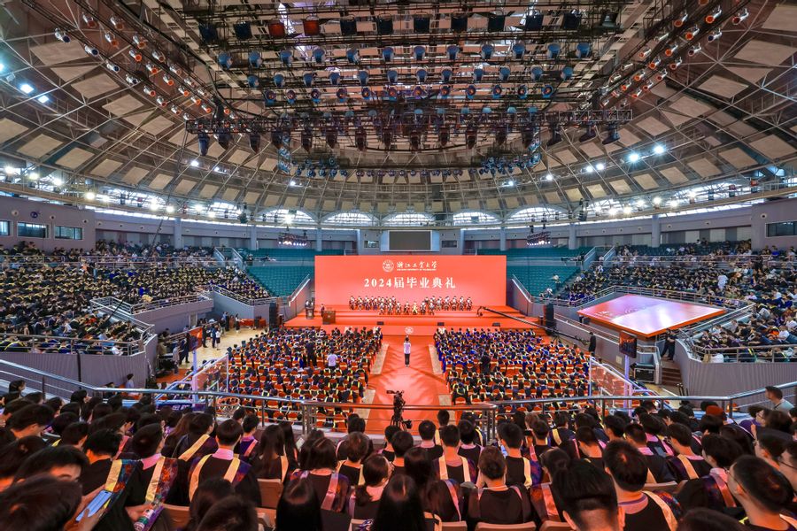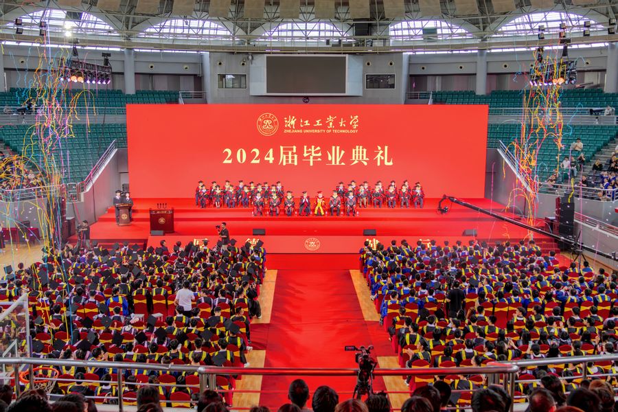 6月21日上午,2024屆學生畢業典禮在屏峰校區體育館舉行。學校黨委書記蔡袁強,校長高翔院士,校領導鄭華均、胡軍、張笑欽、陳耀、吳巨慧等出席。學校相關職能部門和學院負責人、導師、輔導員、班主任、教師代表和全體畢業生參加了典禮。