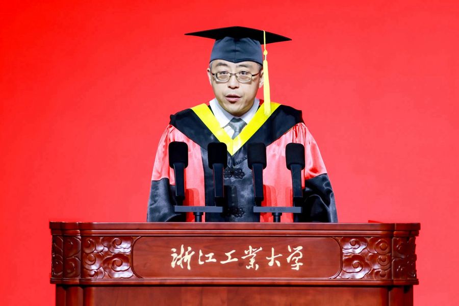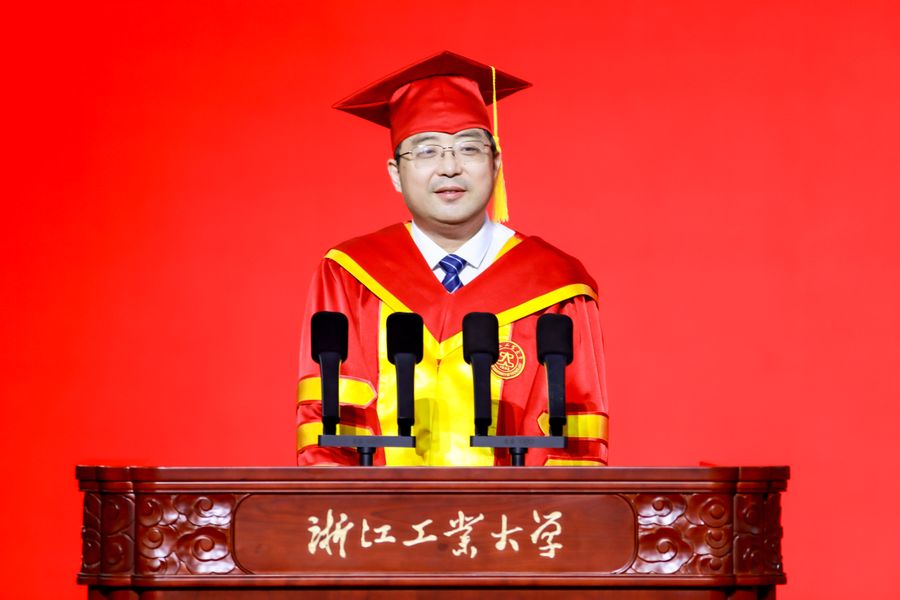 管理學院執行院長吳寶教授代表教師致辭。他寄語浙工大學子:青春不折腰,要永遠保持不低頭、往前沖、戰到底的精神;青春不打烊,要更加鍥而不舍地相信自己、攻堅克難、勇往直前;青春不內耗,要學會寬容與理解,學會珍惜與感恩,勇敢地面對自己,真誠地面對生活。