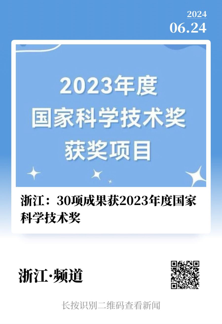 6月24日,新華社客戶端浙江頻道發布“浙江30項成果獲2023年度國家科學技術獎”為主題的報道。由浙江工業工業大學牽頭完成的“新型膜法水處理關鍵技術及應用”項目獲國家科學技術進步獎一等獎。
