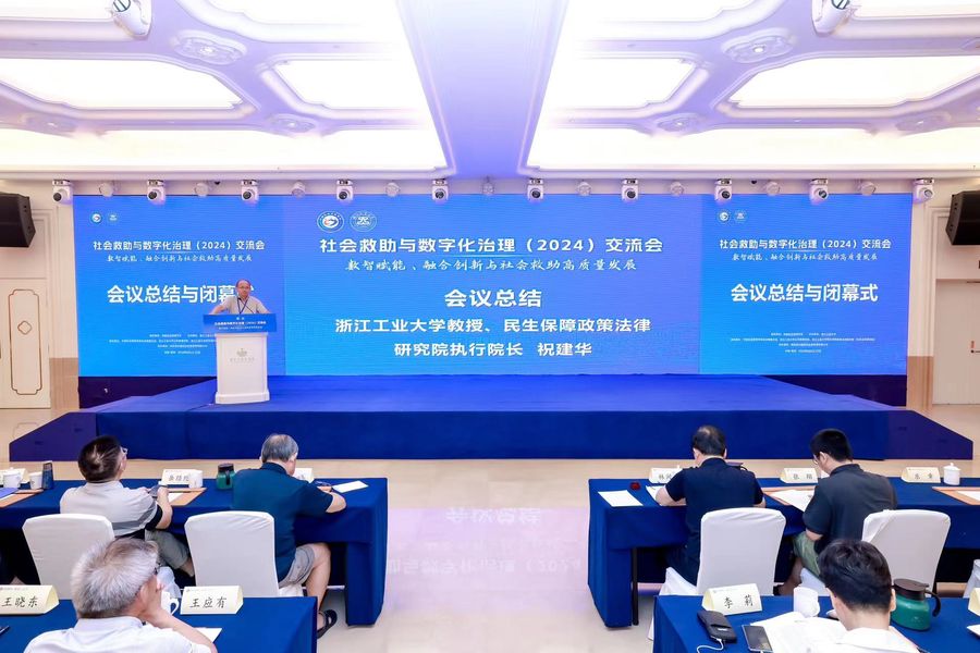 2024年8月24至25日,“社會救助與數字化治理(2024)交流會”在浙江杭州舉行。全國人大常委會委員、民盟中央副主席、中國社會保障學會會長、中國人民大學鄭功成教授,民政部社會救助司司長蔣瑋,浙江省民政廳黨組書記、廳長陳斌,浙江工業(yè)大學黨委書記蔡袁強等出席大會。民政部、聯合國兒童基金會、各地方民政與醫(yī)保等實務部門、全國多所高校、企業(yè)、社會組織的代表300余人參加了會議。與會代表圍繞“數智賦能、融合創(chuàng)新與社會救助高質量發(fā)展”的主題展開了深入討論。大會開幕式由浙江工業(yè)大學黨委委員、副校長陳耀主持。