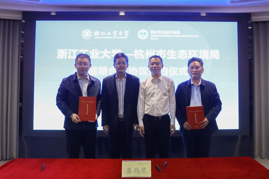10月21日,浙江工業大學與杭州市生態環境局戰略合作協議簽約儀式在朝暉校區舉行。杭州市生態環境局黨組書記、局長馬利陽,黨組成員、二級巡視員馬衛國,二級巡視員曹建松,校黨委書記蔡袁強,黨委委員、副校長胡軍等出席儀式。參加本次活動的還有市人大城建環保工委副主任、市政協常委吳華軍,市科學技術協會副主席、市政協常委周力軍,市政協城建和人口資源環境委員會辦公室主任金慧忠。活動由學校工業技術轉化與推廣中心負責人主持。