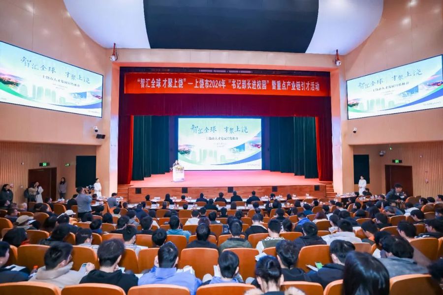 上饒市委人才辦在亞運板球館舉辦了專場宣傳推介會。現場推介人才政策、重點產業鏈、文化旅游等內容,發布了科學技術合作需求清單。學校在上饒優秀畢業生代表分享了工作經歷,上饒市重點產業鏈企業代表作了引才推介。