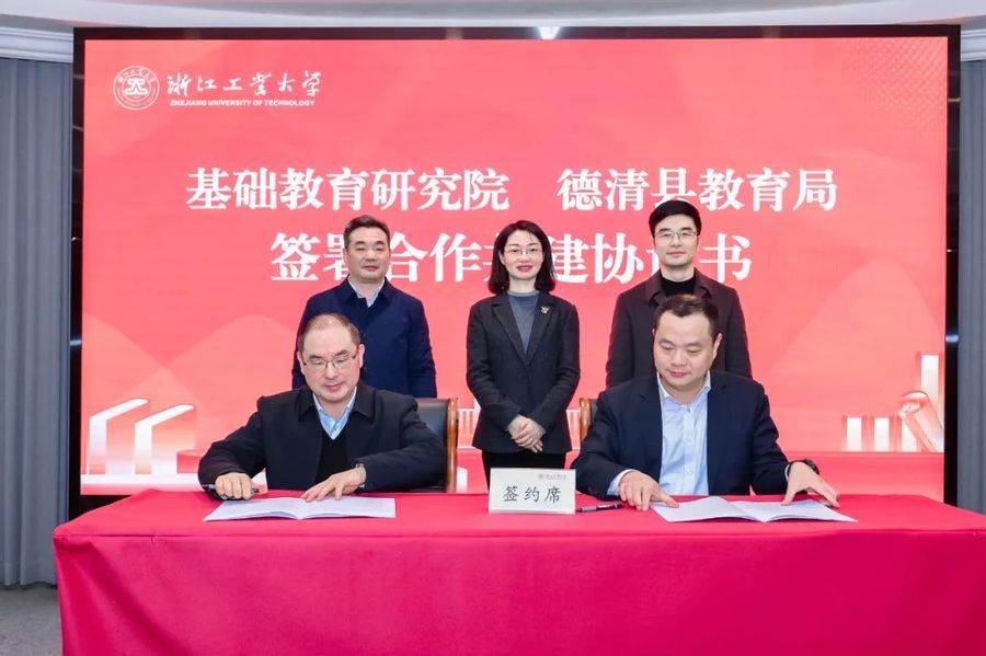 基礎教育研究院與德清縣教育局共同簽署《合作共建“浙江工業大學基礎教育研究院”協議書》。