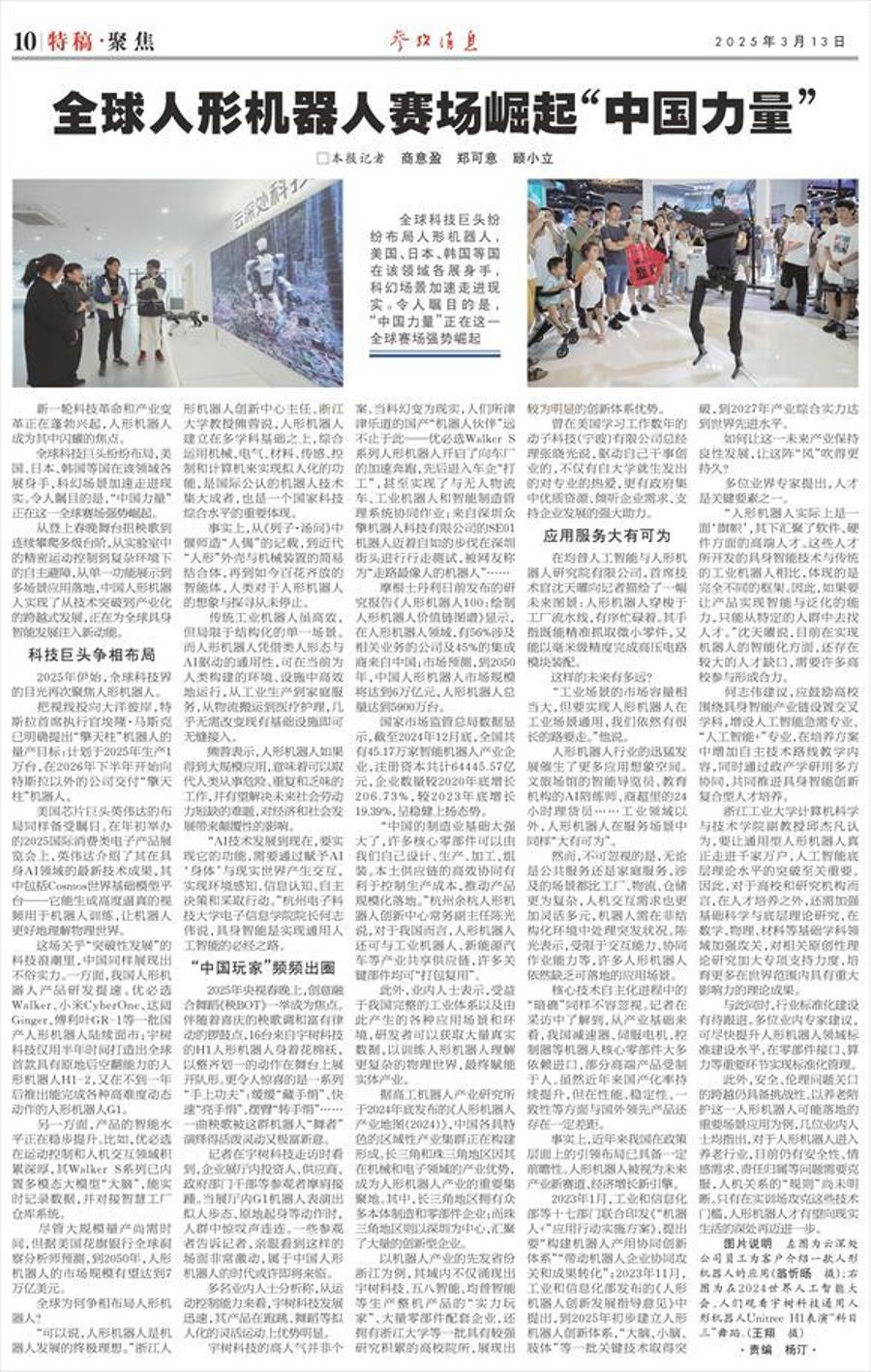 3月13日,《參考消息》第10版以《全球人形機器人賽場崛起“中國力量”》為題,報道全球各國科技巨頭布局人形機器人產業,“中國力量”正在這一全球賽場強勢崛起。我校計算機科學與技術學院副教授邱杰凡接受采訪。邱杰凡認為,要讓通用型人形機器人真正走進千家萬戶,人工智能底層理論水平的突破至關重要。因此,對于高校和研究機構而言,在人才培養之外,還需加強基礎科學與底層理論研究,在數學、物理、材料等基礎學科領域加強攻關,對相關原創性理論研究加大專項支持力度,培育更多在世界范圍內具有重大影響力的理論成果。