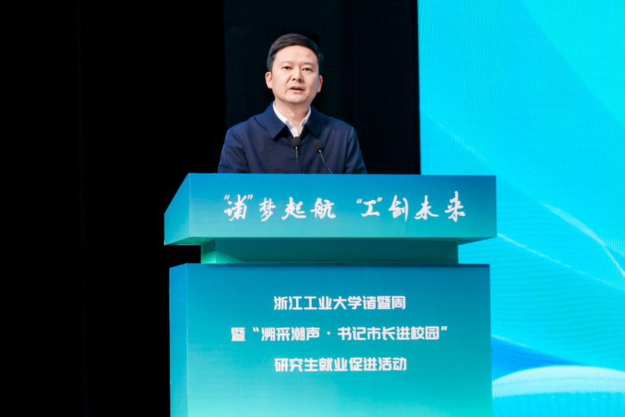 蔡袁強(qiáng)表示,國(guó)家發(fā)展靠人才,民族振興靠人才,推進(jìn)中國(guó)式現(xiàn)代化區(qū)域先行,人才是戰(zhàn)略性支撐。高校培養(yǎng)地方所需優(yōu)質(zhì)人才,地方聚焦人才賦能創(chuàng)新發(fā)展,高校與地方是“創(chuàng)新鏈、產(chǎn)業(yè)鏈、人才鏈”三鏈融合的天然伙伴。此次浙江工業(yè)大學(xué)諸暨周活動(dòng),以高素質(zhì)人才為媒,一體推進(jìn)教育科技人才發(fā)展,全面促進(jìn)高質(zhì)量充分就業(yè),既是學(xué)校七十余載薪火相傳的育才使命、也是諸暨千年古城煥新蝶變的求才之心,更是校地雙向奔赴才盡其用的用才誠(chéng)意。學(xué)校邀請(qǐng)地方領(lǐng)導(dǎo)走進(jìn)校園,與浙工大學(xué)子面對(duì)面,搭建引才工作站、崗位鍛煉基地、理論研學(xué)基地等校地人才合作平臺(tái),讓浙工大學(xué)子更好地領(lǐng)略地方的經(jīng)濟(jì)發(fā)展?jié)摿Α⑸鐣?huì)文化魅力、科技創(chuàng)新活力、人才招引誠(chéng)意。他希望浙工大學(xué)子走進(jìn)諸暨的基層一線(xiàn)干事創(chuàng)業(yè),在諸暨新興的產(chǎn)業(yè)鏈上銳意創(chuàng)新,為強(qiáng)國(guó)建設(shè)、民族復(fù)興貢獻(xiàn)浙工大人才力量。