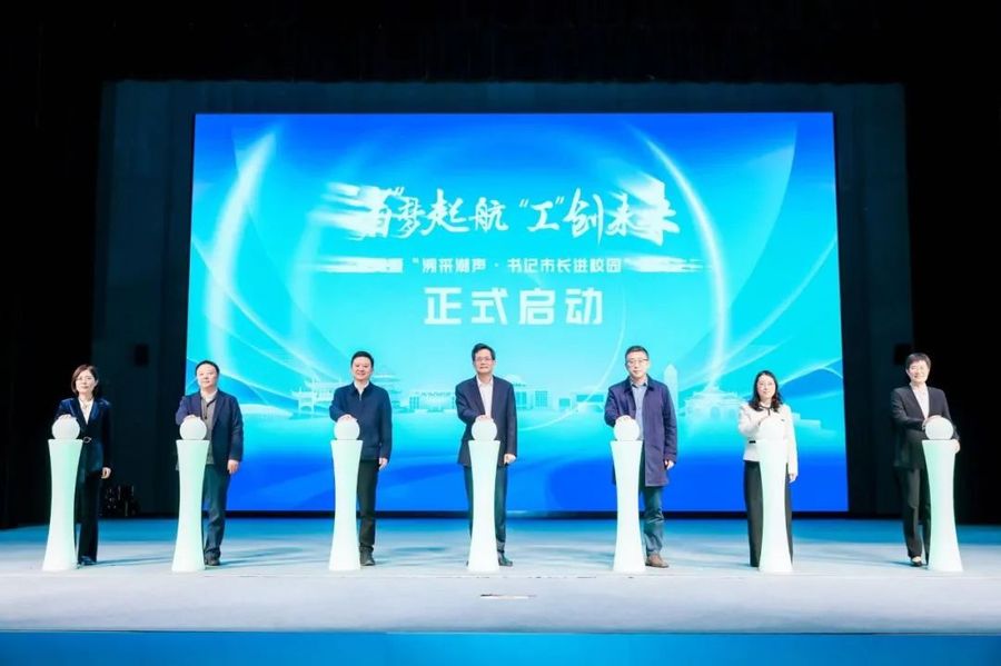 蔡袁強(qiáng)、胡軍、姜少飛、張昆侖、婁丹丹、王奮、童云英共同啟動(dòng)“‘諸’夢(mèng)起航 ‘工’創(chuàng)未來(lái)”浙江工業(yè)大學(xué)諸暨周暨“溯采潮聲·書(shū)記市長(zhǎng)進(jìn)校園”研究生就業(yè)促進(jìn)活動(dòng)。